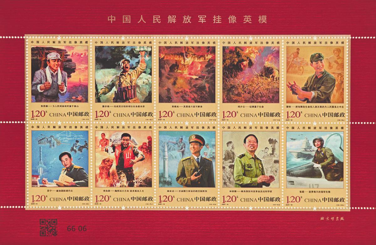 8月1日,《中國(guó)人民解放軍掛像英?!芳o(jì)念郵票發(fā)行。該套郵票一套10枚,展現(xiàn)的英模人物分別是:張思德——為人民利益而死重于泰山,董存瑞——完成黨交給的艱巨任務(wù)最光榮,黃繼光——英勇戰(zhàn)斗奮不顧身,邱少云——紀(jì)律重于生命,雷鋒——把有限的生命投入到無(wú)限的為人民服務(wù)之中去,蘇寧——獻(xiàn)身國(guó)防現(xiàn)代化,李向群——胸懷遠(yuǎn)大志向追求高尚人生,楊業(yè)功——忠誠(chéng)履行使命的模范指揮員,林俊德——獻(xiàn)身國(guó)防科技事業(yè)杰出科學(xué)家,張超——逐夢(mèng)海天的強(qiáng)軍先鋒。