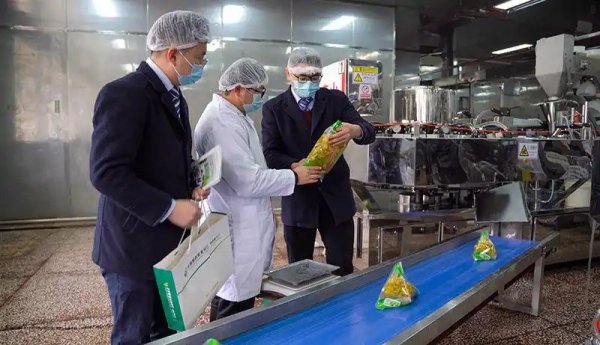 郵儲銀行客戶經(jīng)理在調研辣椒加工產(chǎn)業(yè)。