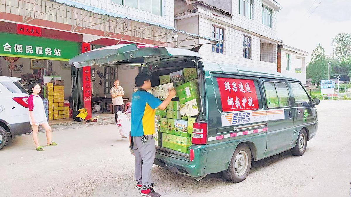 鮮桃裝好箱后,由郵政攬投員裝車運(yùn)送至最近的收寄點(diǎn)?!踉S經(jīng)緯 攝