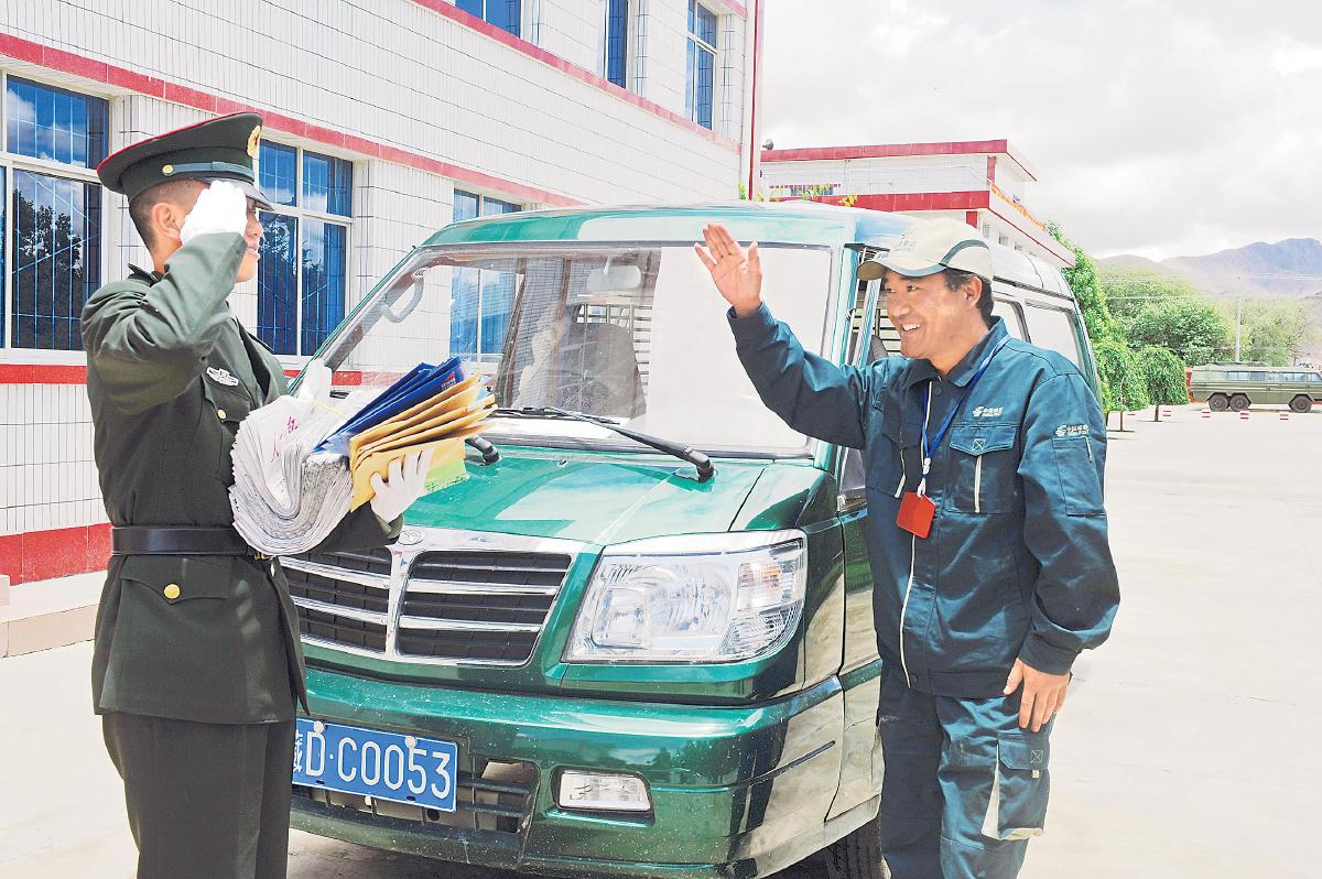 西藏郵政為邊防官兵送去黨報黨刊和包裹郵件。