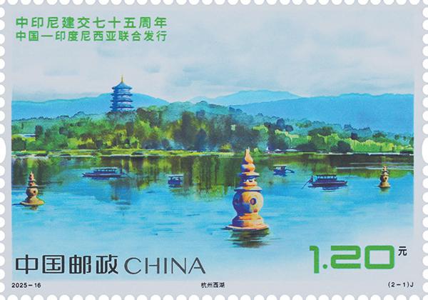 中國郵政定于8月30日發(fā)行《中印尼建交七十五周年》(與印度尼西亞聯(lián)合發(fā)行)紀(jì)念郵票一套兩枚,郵票圖案名稱為:杭州西湖、布拉坦湖。