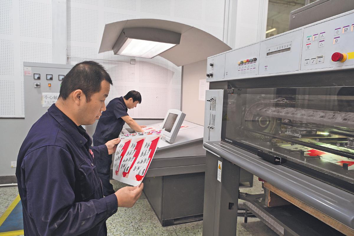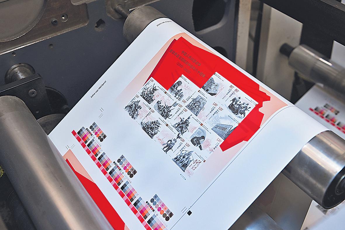 北京郵票廠對(duì)抗戰(zhàn)勝利80周年紀(jì)念郵票采取雙印刷機(jī)模式,工作人員按規(guī)程嚴(yán)格把控印刷質(zhì)量,確保成品萬(wàn)無(wú)一失?! 踔煺x 攝
