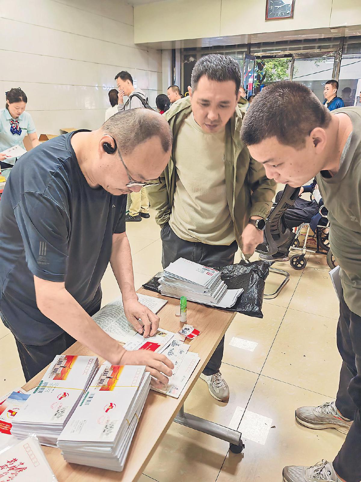 在云南省騰沖縣滇西抗戰(zhàn)紀(jì)念館的發(fā)行活動(dòng)現(xiàn)場,集郵愛好者涌向臨時(shí)設(shè)立的郵政服務(wù)臺(tái)前,排隊(duì)購買紀(jì)念郵票及其配套郵品。郵政工作人員現(xiàn)場為郵迷提供蓋戳和郵寄服務(wù),滿足大家的收藏與分享需求?! 鯒钊镦獭↑S金金 攝影報(bào)道