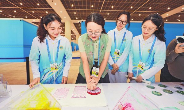 天津郵政充分發(fā)揮自身文化屬性,聚焦“傳統(tǒng)文化、大國(guó)外交、魅力天津”三大主題,結(jié)合天津城市特色,推出45款彰顯天津文化和郵政文化的郵品。同時(shí),天津郵政設(shè)置郵品互動(dòng)體驗(yàn)區(qū),展出中國(guó)首套郵票——大龍郵票。媒體記者和工作人員在欣賞郵票珍品的同時(shí),還能體驗(yàn)大龍郵票拓印制作過(guò)程(見(jiàn)圖),更加深刻感受到中國(guó)郵政的歷史厚重感以及天津的文化底蘊(yùn)。