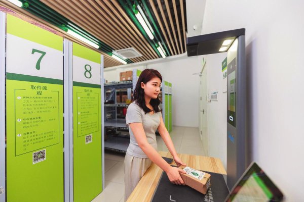 8月20日,在安徽省合肥市科大訊飛小鎮(zhèn),客戶在郵政無人驛站掃碼領(lǐng)取郵件。