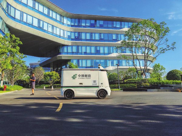 8月20日,在安徽省合肥市科大訊飛小鎮(zhèn),郵政無人車在配送郵件。