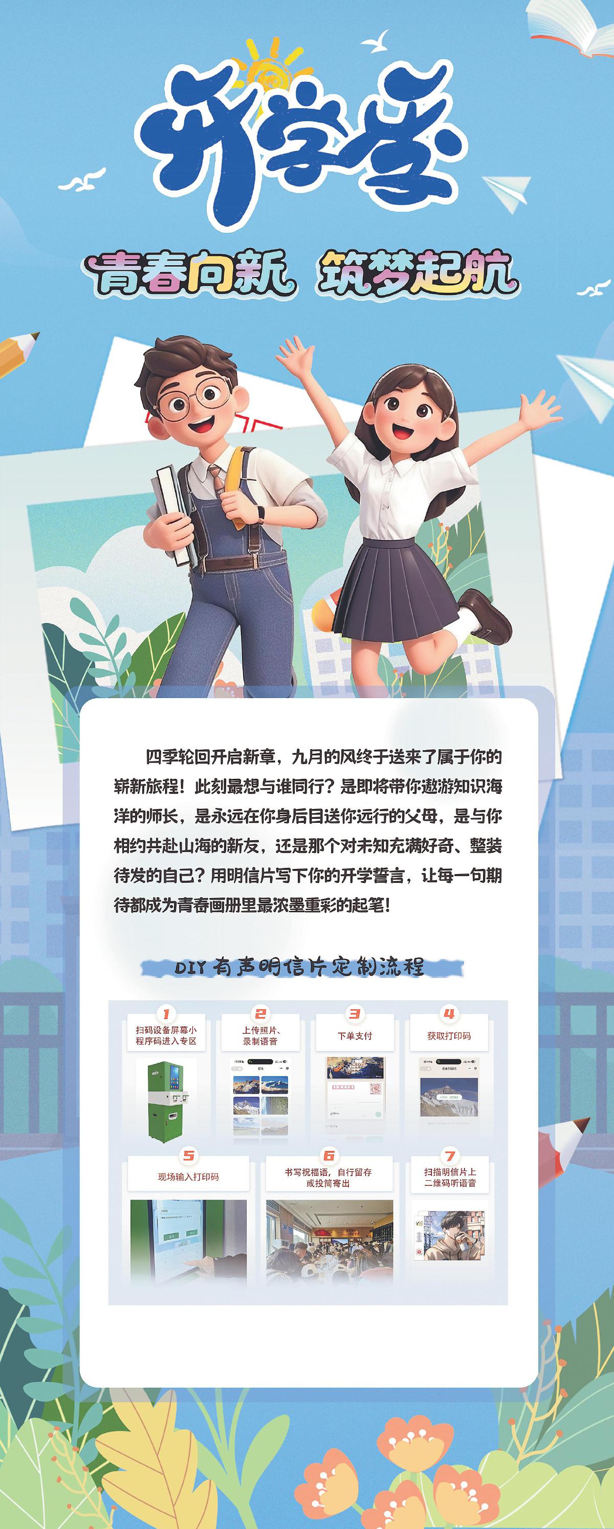 9月6日是鷹潭職業(yè)技術(shù)學(xué)院開學(xué)的日子。鷹潭市月湖區(qū)郵政分公司郵政業(yè)務(wù)部主任熊銀萍帶領(lǐng)同事,一早就守在校園郵政快遞驛站門口?!?元體驗(yàn)DIY有聲明信片”的廣告展架剛擺出來,就吸引了學(xué)子們駐足——他們與家人溫馨合影,和朋友歡樂抓拍,捕捉校園里的第一抹秋色,開啟大學(xué)生活的第一張自拍……這些精彩瞬間都被有聲有色地記錄在小小的明信片上。當(dāng)天,500余枚DIY明信片從這里發(fā)出。熊銀萍看著學(xué)子們的笑臉欣慰地說:“這些承載夢想與祝福的卡片,將陪伴他們一起走向更加美好的未來!”