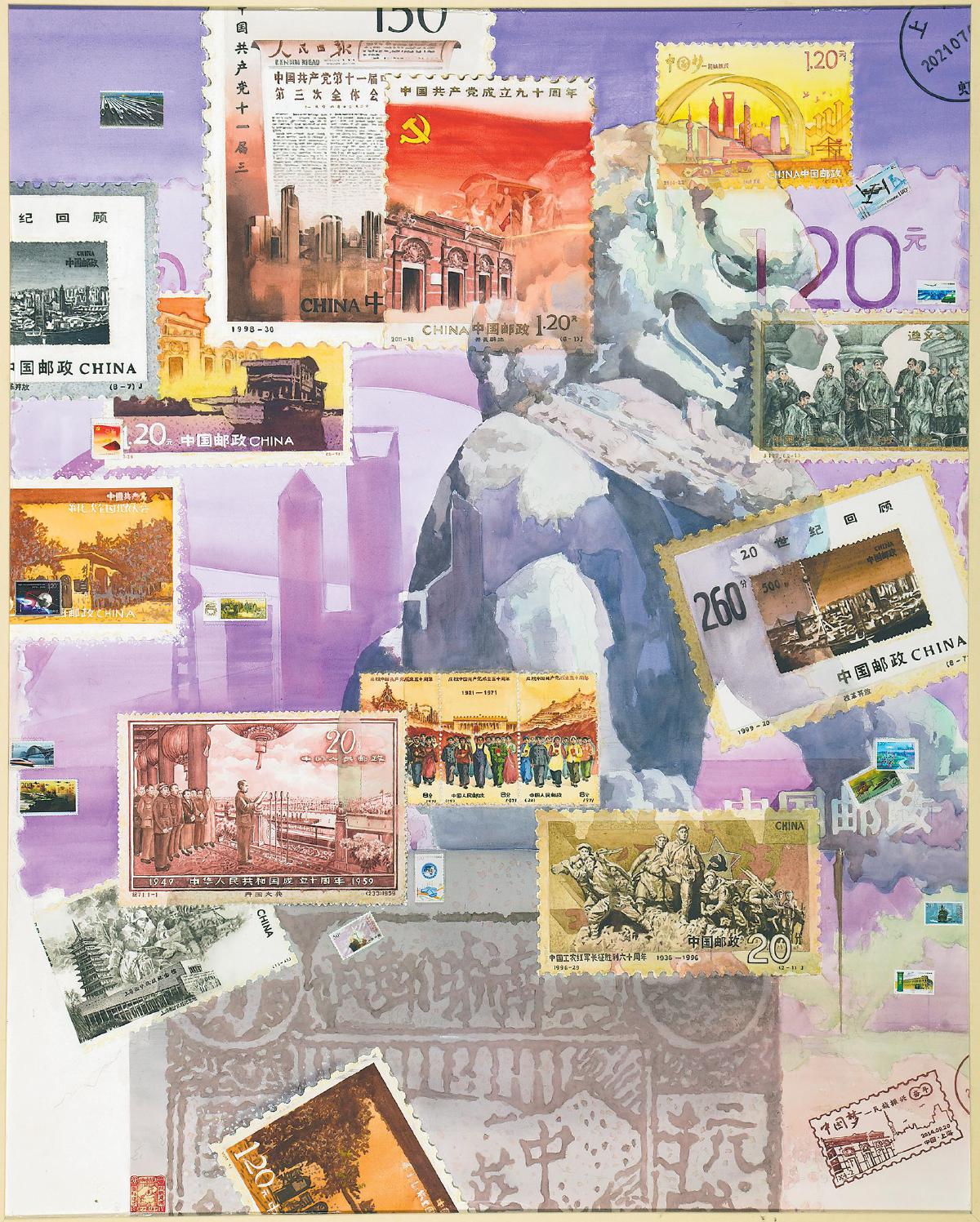 為了更好地完成畫作,田燕萍還請(qǐng)教了她的繪畫老師——浙江省美術(shù)家協(xié)會(huì)會(huì)員、水彩畫界策展人馬百齊。“方寸對(duì)畫卷,頗有歷史和藝術(shù)的價(jià)值?!瘪R百齊肯定了田燕萍的創(chuàng)作思路,并在郵票選取、表現(xiàn)手法、繪畫技巧上對(duì)其進(jìn)行了專業(yè)的指導(dǎo)。