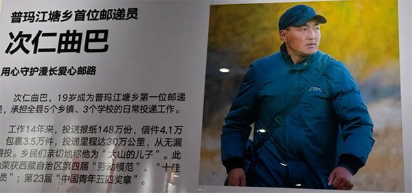 離開(kāi)普瑪江塘前,普瑪江塘鄉(xiāng)黨委副書記、人大主席洛桑久乃熱情地邀請(qǐng)采訪組參觀位于鄉(xiāng)政府內(nèi)的邊境紅色教育基地。在普瑪江塘杰出人物展區(qū),記者一下就看到了次仁曲巴事跡的展板,2019年他榮獲了第23屆“中國(guó)青年五四獎(jiǎng)?wù)隆薄B迳>媚顺錆M感慨地說(shuō):“中國(guó)郵政和我們地方黨委、政府一樣,無(wú)論誰(shuí)來(lái)誰(shuí)走,都會(huì)永遠(yuǎn)堅(jiān)守在這高寒的邊境線上。鄉(xiāng)親們需要我們,國(guó)家需要我們!”