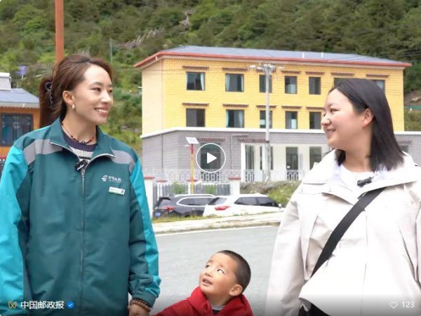 在“玉麥鄉(xiāng)”標(biāo)牌下,采訪組迎來了玉麥鄉(xiāng)郵政代辦所營業(yè)員索朗卓嘎,和她一起走進(jìn)綠意盎然的村落,清澈的河水穿村而過,經(jīng)幡在頭頂隨風(fēng)起舞。