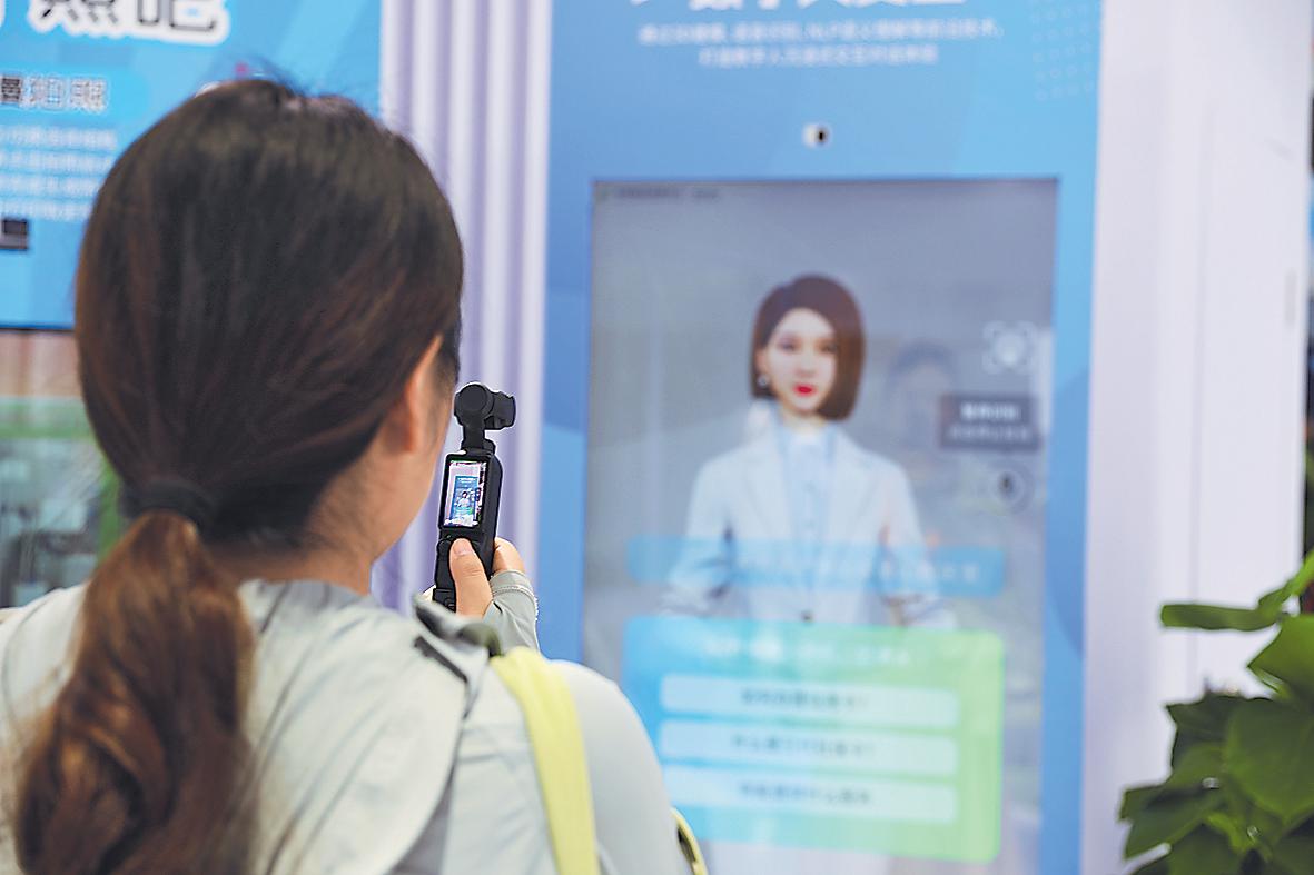 觀眾參與郵儲銀行高科技互動體驗活動。□李巍 攝