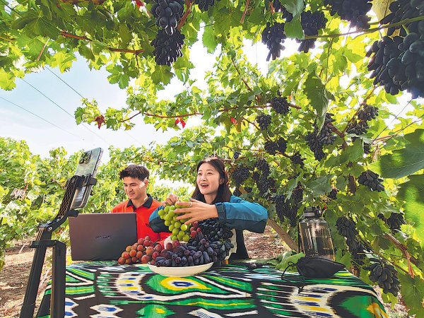“葡萄進(jìn)入成熟期以來,兩周時(shí)間我們已進(jìn)行5場直播,還聯(lián)系當(dāng)?shù)亍W(wǎng)紅’,在其直播間上架鏈接,以進(jìn)一步提升產(chǎn)品的知名度?!币翆幙h分公司副總經(jīng)理佟巖軍介紹說。