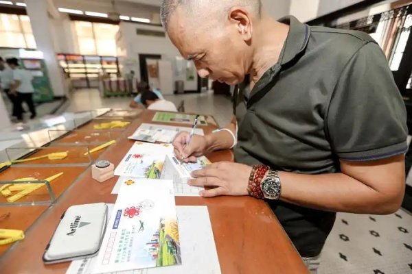 最受矚目的環(huán)節(jié),莫過于第56屆世界郵政日紀(jì)念封的首發(fā)。紀(jì)念封剛一亮相,便吸引了大批市民駐足圍觀,大家自覺排成整齊的隊伍,有序等待領(lǐng)?。荒玫郊o(jì)念封后,又紛紛走向紀(jì)念郵戳區(qū),小心翼翼地為封片蓋上專屬印記,每一個動作都透著對集郵的珍視。