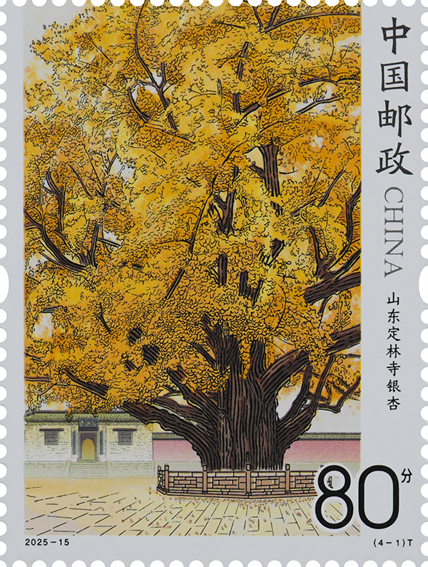 中國郵政定于2025年8月15日發(fā)行《古樹名木》特種郵票1套4枚,郵票圖案名稱為:山東定林寺銀杏、四川翠云廊劍閣柏、山西晉祠國槐、浙江普陀山普陀鵝耳櫪。全套郵票面值4.00元,計(jì)劃發(fā)行數(shù)量為470萬套。