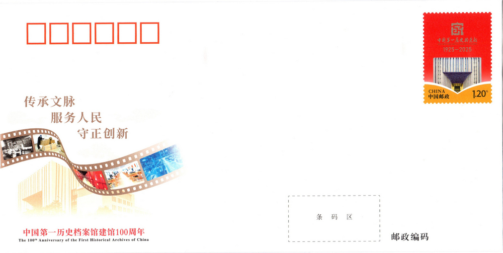 中國(guó)郵政定于2025年10月10日發(fā)行《中國(guó)第一歷史檔案館建館100周年》紀(jì)念郵資信封1套1枚。詳情如下: