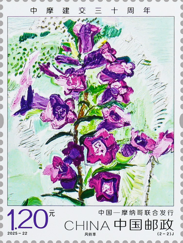 中國郵政定于2025年10月15日發(fā)行《中摩建交三十周年》紀(jì)念郵票1套2枚,郵票圖案名稱為:春蘭、風(fēng)鈴草。全套郵票面值2.40元,計劃發(fā)行數(shù)量為450萬套。